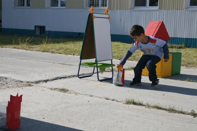 Две команды малышей старшей группы стали настоящими пожарными, участвуя в различных эстафетах. Сначала, увидев «огонь и дым» дошколята по телефону вызывали пожарных, заодно повторяя номер вызова спасателей МЧС. Затем примерив на себя экипировку пожарных, стали эвакуировать «жителей» двухэтажного дома из огня. В итоге спасли всех! Радовались благополучному исходу не только соревнующиеся, но и болельщики.