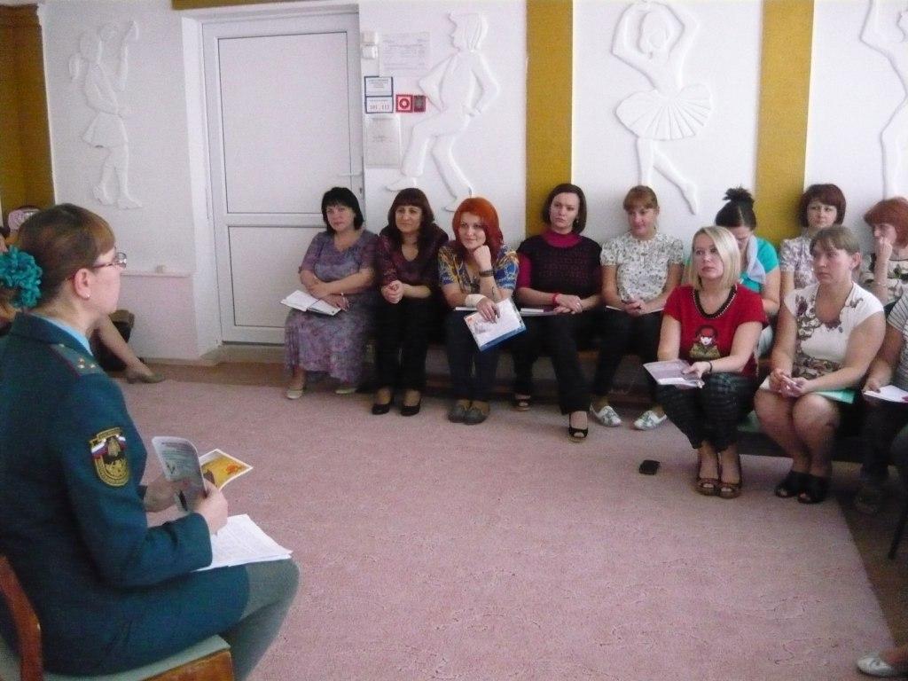 Встреча с воспитателями и педагогами состоялась немного позже. Тема лекции «Правила противопожарного режима в РФ в детских дошкольных учреждениях». Для оформления уголков безопасности инспектор раздала памятки на противопожарную тематику. В заключение попросила педагогов на родительских собраниях обязательно говорить родителям, что бы не оставляли малолетних детей без присмотра на долгое время. Предупреждать о возможных опасностях, которые могут подстерегать малыша дома и о необратимости печальных последствий.