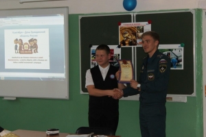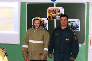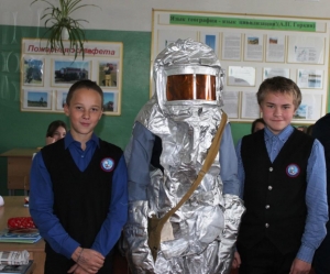 В ходе показа презентации Виктор Серебренников рассказал про создание гражданской обороны и ее значение в наши дни. Ребята узнали девиз гражданской обороны «Предупредить, научить, помочь» и с удовольствием поучаствовали в конкурсах. Школьники отвечали на занимательные вопросы о спасателях, чрезвычайных ситуациях, вспоминали о правилах пожарной безопасности и обращения с печами. Загадки по пожарной безопасности оказались занимательными и веселыми. «С огнем бороться мы должны, с водою мы напарники, мы очень людям всем нужны, так кто же мы? Пожарники!» - дружно и хором ответили ребята. «А вот и не пожарники!» – отвечал Виктор Иванович и рассказал ребятам, что пожарники – это люди, которые устраивали пожары с целью получения выгоды. А тушат пожары – пожарные!