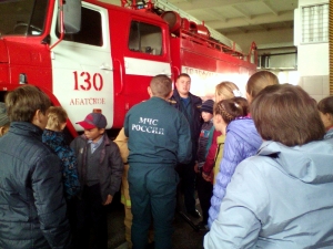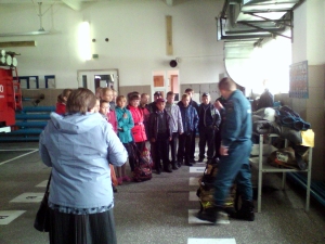 Мальчишки задавали вопросы о мощности машин и пожарных инструментов, и получили исчерпывающие ответы. Командир отделения разрешил школьникам примерить боевую одежду пожарного: особой популярностью пользовалась каска пожарного. Дети поблагодарили сотрудников и работников пожарной части за интересную экскурсию.