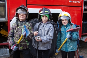 Сначала ребят познакомили с выставкой, посвященной 25-летию МЧС России, и показали видео об истории создания противопожарной службы, а также рассказали о деятельности «чрезвычайного» Министерства и перспективах его развития. Затем ученикам продемонстрировали настоящую пожарную машину, что вызвало у них настоящий восторг, ведь можно было не только посмотреть, что скрыто внутри, но и потрогать, а также примерить боевую каску огнеборца.