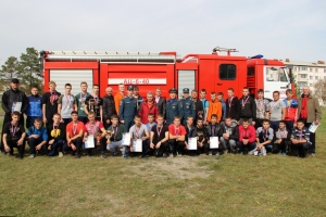 Рядовые внутренней службы Михаил Тихонов, Александр Агафонов, Дмитрий Качурин и младший сержант внутренней службы Виталий Ковылин продемонстрировали показательные выступления в подъеме по штурмовой лестнице в окно 4-го этажа учебной башни и пожарной эстафете.