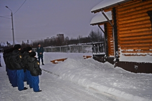Экскурсия началась с территории части, на которой ребята смогли увидеть спортивный городок, где тренируются сотрудники. Особое внимание ребята обратили на огневую камеру, предназначенную для отработки профессиональных навыков в условиях пожара, т.е. в задымлённой среде при повышенных температурах.