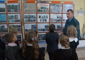 После осмотра выставки начальник 25 пожарно-спасательной части ФПС Сергей Громилин провел с ребятами занятие по пожарной безопасности, поведению на тонком льду и в дни школьных каникул. Увиденным дети остались довольны.