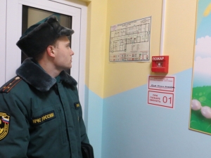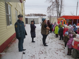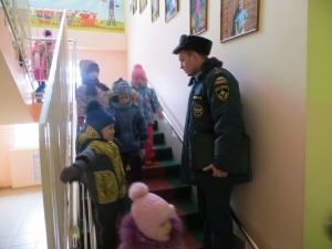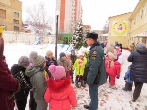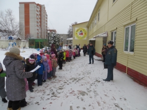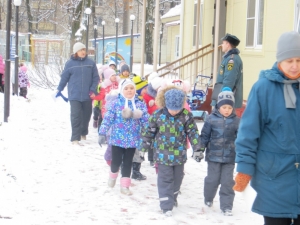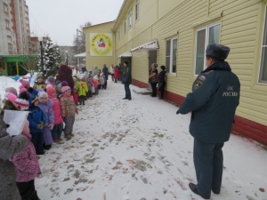 В начале мероприятия сотрудники МЧС провели теоретическую часть – с педагогами и воспитанниками детского сада повторяли алгоритм действий при эвакуации: необходимо как можно быстро покинуть здание и отойти от него на безопасное расстояние, выходить нужно через ближайший выход, при этом не паникуя.
