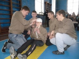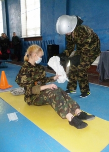 В рамках конкурсной программы студентам предстояло продемонстрировать свою физическую подготовку, опробовать себя в роли защитников Родины и спасателей. Юноши и, что удивительно, девушки показали хорошие навыки в разборке и сборке автомата, оказании помощи пострадавшему, облачении в общевойсковой защитный комплект и комплект боевой одежды пожарного.