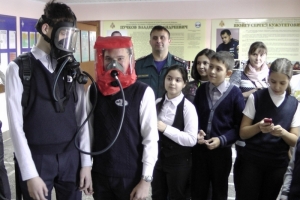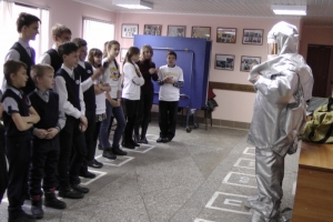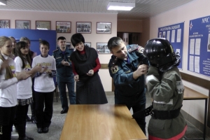Особый интерес у юных пожарных вызвал теплоотражающий костюм, а возможность примерить и испытать в действии аппарат на сжатом воздухе и сфотографироваться в нем просто привела всех в восторг.