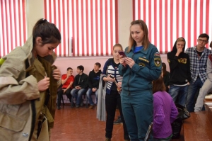 В это время девятиклассники сдавали норматив «Надевание боевой одежды пожарного». Юноши и девушки на время надевали все элементы боевой одежды. Лучшее время по надеванию боевки уже второй год показывает Анастасия Селезнева из школы №3. Настя справилась с тяжелым обмундированием за 28 секунд. 30 секунд – время ученика школы №2 Константина Авходеева. На третьем месте Светлана Лебедева из школы №3, надевшая БОП за 32 секунды.