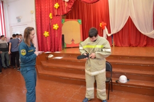 Ребятам предстояло вызвать пожарную охрану и надеть боевую одежду пожарного. За ошибки начислялись штрафные баллы. В условия выполнения задания также входила ситуация « В школе произошло загорание, имеется пострадавший. Ваши действия». Для выполнения задания на столе был размещен телефон, на котором указан номер учреждения, где проводится тур, табличка с информацией о наименовании объекта и его адрес. Далее на некотором расстоянии подготовлен комплект боевой одежды пожарного. После выполнения основного задания инструктор ВДПО Степура Татьяна подготовила карточки с вопросами по тематике пожарная безопасность, с которыми старшеклассники успешно справились.