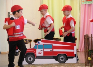Члены агитбригады – воспитанники подготовительной группы «Юные огнеборцы». Эти ребята уже второй год постигают азы пожарного дела. На выступление пришли воспитанники, которым еще предстоит в этом году вступить в ряды юных спасателей.