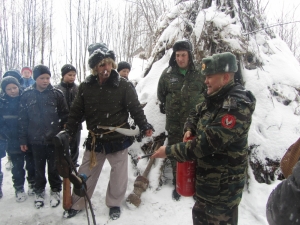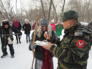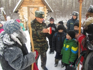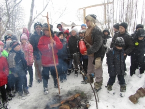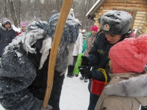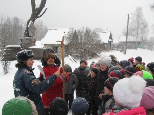 Легенда не испугала школьников, они решили обязательно встретиться с ведуньей, несмотря на трудности, которые могли ожидать на пути. Дорогу вызвался показать всё тот же Иван. Шли тропинками заснеженными, дошли до указателя: «Налево пойдешь – богатым станешь, направо пойдешь – коня потеряешь, прямо пойдешь – погибель сыщешь». И здесь ребят ожидало первое испытание – ответы на вопросы по пожарной безопасности. Ответив на все вопросы правильно, дети храбро держали путь прямо, готовы были к любой борьбе. И препятствие не замедлило появиться: на поляне возле костерка грелись разбойники-грабители. Они-то и перегородили путь. Чтобы пропустить дальше, они попросили золота да серебра. Иван откупился мешочком золотых монет. А дети подсказали лесным разбойникам, что костер оставлять нельзя без присмотра и помогли потушить с помощью огнетушителя. Тут разбойники подобрели и показали дорогу к Бабе Яге. Пройдя по деревянному мосту через реку, храбрые путешественники прямиком вышли к уютному домику Лешего. Из него выскочила Баба Яга и рассказала про свою беду, что обидела чем-то свою избушку на курьих ножках, та сбежала, и никаким колдовством не возможно ее вернуть. Школьники решили помочь старушке, разгадав, на что обиделась избушка. Разложили оставшийся в мешке скарб на опасный и безопасный. Как оказалось в ходе игры, бабулька не знает элементарных правил пожарной безопасности и не соблюдает их, вот от этого избушка и сбежала. Дети были счастливы, что научили Бабу Ягу уму- разуму.