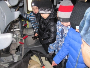 Также школьники побывали на пункте связи пожарной части, куда поступают сообщения о происшествиях в городе. На экскурсии ребята узнали, что пожарные каждый день повышают уровень своего профессионального мастерства: проводят боевое развертывание, подъем по штурмовой лестнице в окно 4-го этажа учебной башни, а также подъем по трехколенной лестнице.