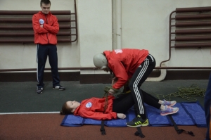 - бег в 25 м с лежащим на носилках условно пострадавшим;