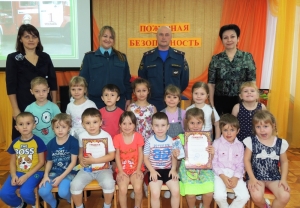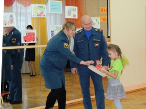 Дошколята уверенно отвечали на все вопросы по пожарной безопасности, и, в свою очередь, представили на конкурс рисунки на пожарную тематику. Все участники мероприятия получили небольшие подарки от почетных гостей, а в благодарность ребята подарили свои лучшие рисунки на память.