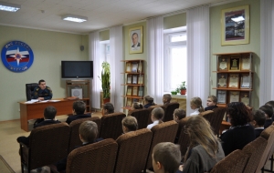 В ходе беседы временно исполняющий обязанности начальника отдела безопасности людей на водных объектах Главного управления МЧС России по Липецкой области Валерий Неклюдов объяснил третьеклассникам правила безопасного поведения на льду, рассказал, какие действия необходимо предпринять и куда следует звонить, если они стали очевидцами происшествия на воде. А также предупредил об опасности выхода на неокрепший лед в период его становления. Для студентов был проведен подробный инструктаж о мерах безопасности и способах самоспасения на водоемах в зимний период. Затем для посетителей была проведена экскурсия по залам пожарно-технической выставки.
