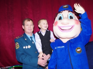 Затем сотрудники МЧС России провели для детей веселый и познавательный урок безопасности. Проводить им беседу помогали «Константин-01» и «Валентин». Всем зрителям плюшевые герои вручили памятки с «Добрыми советами МЧС».