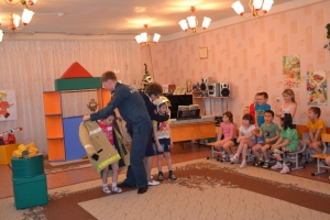 На этом празднике пожарный дознаватель Петр Удинцев и инструктор Сысертского ВДПО Татьяна Степура рассказали о боевой одежде пожарного и разрешили примерить ее детворе. Желание на минутку почувствовать себя в роли пожарного появилось у одного из воспитателей, которая примерила на себя костюм пожарного. Много шума и смеха было в стенах детского сада. Дети охотно фотографировались, в дальнейшем фотографии будут использованы для оформления альбома-летописи и оформления уголков пожарной безопасности в детском саду.