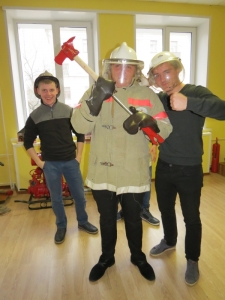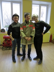 В последнем зале молодые люди увидели стенд, оборудованный системой оповещения людей о пожаре и приборами пожарной сигнализации, который выполнен в виде трёх этажного здания в разрезе. Особо их заинтересовал вопрос, о том, как должен выглядеть план эвакуации и где он должен находиться.