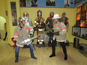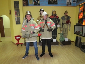 Экскурсия проходила по четырем выставочным залам, посвященным истории пожарной охраны, пожарно-техническому вооружению, государственному пожарному надзору и профессиональным аварийно-спасательным отрядам.