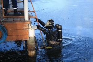 После теоретической части урока пришло время для практики. Для начала школьникам предложили изучить и даже примерить элементы профессионального водолазного обмундирования. А после водолазы провели тренировочное погружение на канале Цны.