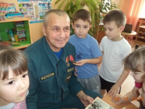 Совсем недавно руководству ФГКУ «7 отряд ФПС по пензенской области» поступило предложение от администрации детского сада № 7 г. Никольска Пензенской области организовать встречу представителя МЧС с воспитанниками детского сада. Самой подходящей кандидатурой, по общему мнению, стал помощник начальника 7 ОФПС по материально-техническому обеспечению – Алексей Козлов. Выбор оказался идеальным так, как Алексей Козлов очень дружелюбен и общителен, да и к тому же сам счастливый дед трех внуков. «Трижды дедушка!!»- подшучивают над ним коллеги.