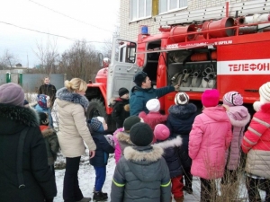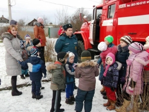С воспитанниками проведена беседа на противопожарную тему, дети ознакомились с пожарной техникой и пожарно-техническим вооружением, состоящим на вооружении части, узнали о её возможностях и применении.
