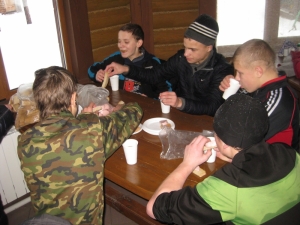 После катания с горок все прошли в «теремок», где за чаепитием обсудили рекорды, поставленные на самый дальний спуск, на самый быстрый подъем в горку и поделились радостью от полученного удовольствия и общения в этот прекрасный морозный и солнечный день, действительно напоминающий зимнюю сказку.