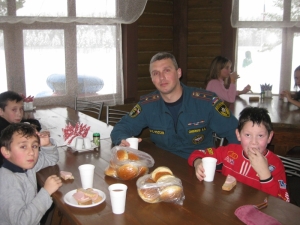 26 декабря 2015 года для воспитанников Курганского областного детского дома №1 сотрудники Специализированной пожарно-спасательной части федеральной противопожарной службы по Курганской области устроили детские радости. Именно так назвали это мероприятие начальник группы кадровой и воспитательной работы Александр Симонов и начальник медико-психологической службы Андрей Буров. «В этот день мы решили привести детей в любимую для всех курганцев зону отдыха «Голубые озера», постараться отвлечь от повседневности. Свежий лесной воздух, прекрасная природа, море радости и азарта у детей. Все это дает заряд жизненной энергии»- отметил Андрей Николаевич.