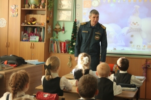 В преддверии новогодних школьных каникул сотрудники Главного управления МЧС России по Хабаровскому краю пришли поговорить о правилах безопасности с ребятами второго «В» класса средней школы №12 города Хабаровска.