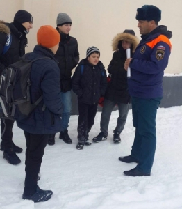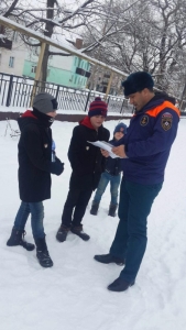 Сотрудники МЧС рассказали детям из поселка Черноречье города Грозного о правилах безопасного поведения на льду и способах оказания помощи провалившемуся под лед человеку.