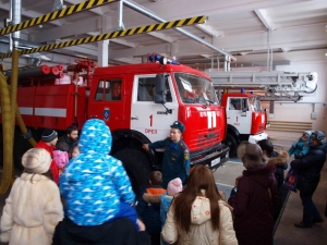 Пожарные спешат на вызов по первому звонку, не зная, что их ждет на пожаре и вернуться ли они домой. Сотрудники пожарно-спасательной части провели для гостей познавательную экскурсию, в ходе которой рассказывалось об истории развития пожарной охраны, традициях и работе огнеборцев. Взрослые и дети увидели служебные помещения пожарной части – учебный класс, пост газодымозащитной службы, комнату психологической разгрузки, познакомились с порядком несения службы и организацией быта пожарных. После показали место работы дежурного диспетчера и особенности его работы.