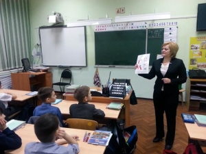 Очередная встреча инструктора Бузулукского отделения ВДПО Кузяриной И.П. с учащимися 4-го класса МОАУ СОШ № 11 началась с беседы «О безопасном поведении с огнем»