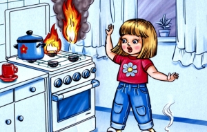 Если в квартире начался пожар, а взрослых нет, убегай подальше от огня. Если квартира не закрыта, не задумываясь, уходи из квартиры.
