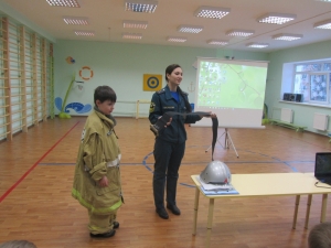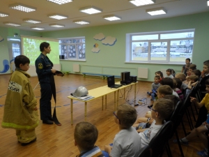 Инспектор профилактики пожаров пришла в гости не с пустыми руками, Юлия продемонстрировала всеми любимую боевую одежду пожарного и включила маленьким зрителям мультфильм о правилах пожарной безопасности. Сотрудник 1-го отряда ФПС поблагодарила мальчишек и девчонок за прекрасное владение информацией и пообещала, что в следующий раз придумает для них ещё более сложные и вместе с тем интереснейшие задания. Малыши, в свою очередь, пообещали соблюдать все правила пожарной безопасности.