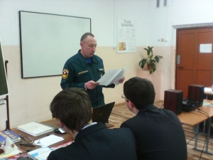 Начинался урок с рассказа об истории создания и развития ведомства, с помощью видеосюжетов сотрудники пожарной охраны показали пожарно-техническое вооружение и познакомили с принципами его работы, распорядком дня личного состава.