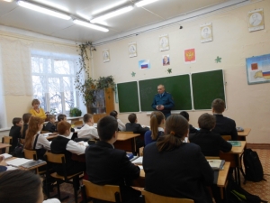 Андрей Юрьевич объяснил школьникам, что они должны знать, как обращаться с электрическими и газовыми приборами, привёл примеры материалов, которые легко возгораются, объяснил, как правильно пользоваться огнетушителями и другими средствами пожаротушения.