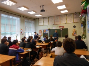 Беседу с учащимися проводил старший мастер ГДЗС Андрей Юрьевич Бухарин. В первую очередь Андрей Юрьевич разобрал с ребятами основные причины возникновения пожара: нарушение правил эксплуатации электрических и газовых приборов, забытые включённые электроприборы, неосторожное обращение с огнём.