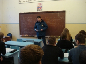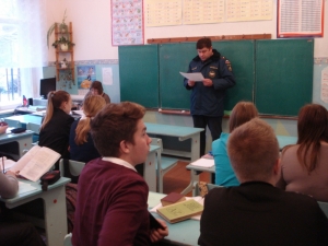 Сотрудники 20 пожарно-спасательной части напомнили ребятам о правилах поведения в различных чрезвычайных ситуациях как природного, так и техногенного характера. Особое внимание было уделено пожарной безопасности. Ученикам напомнили об опасности игры с огнем и что нужно делать, если произошел пожар. Кроме того, детям рассказали и показали, как оказывать первую помощь, а также как пользоваться первичными средствами тушения пожара.