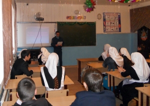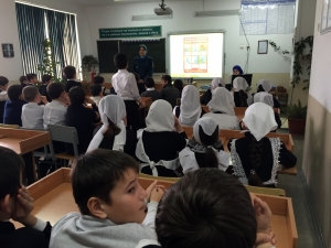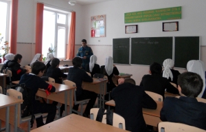 Инспектор пожарно-спасательной части №26 по охране Надтеречного района Мадина Гумадаева показала учащимся, как правильно пользоваться первичными средствами пожаротушения. Также детям были розданы листовки, содержащие информацию о правилах набора экстренных служб.
