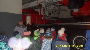 А затем – просмотр мультфильма о правилах пожарной безопасности. Но и на этом экскурсия не закончена, она продолжается в гараже, где тоже много интересного.