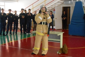После клятвы состоялись показательные выступления по строевой подготовке старшеклассников. Закончилось торжественное мероприятие соревнованием по надеванию средств защиты органов дыхания и боевой одежды пожарного.