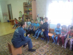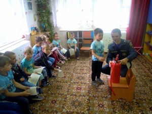 С воспитанниками детского сада «Колобок» поселка Долгое сотрудники районного отделения надзорной деятельности провели беседу по пожарной безопасности.