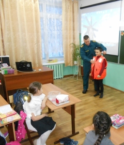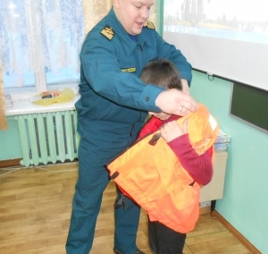 После теоретической части занятия сотрудники ГИМС продемонстрировали ребятам спасательные средства и разъяснили, как ими пользоваться в случае чрезвычайной ситуации на водных объектах, а потом посмотрели обучающий фильм по оказанию помощи человеку, провалившемуся под лед.