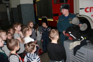 На этой неделе младшая группа йошкар-олинского клуба «Академия талантов» побывала с обзорной экскурсией в специализированной пожарно-спасательной части.