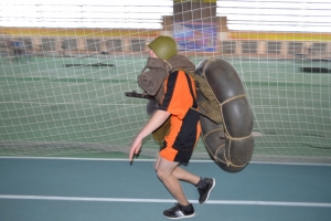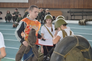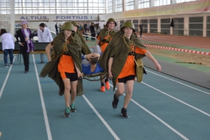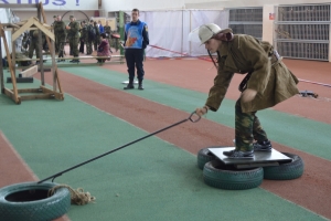 На этапе «Медицина» ребятам пришлось в военной амуниции выносить раненого бойца из поля боя, а затем оказывать ему первую медицинскую помощь.