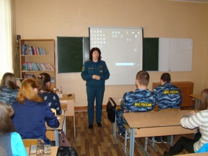 Тематическое занятие проходило среди учащихся кадетского класса МЧС в непринуждённой обстановке в форме диалога.