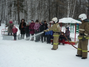 Приезд людей в форме вызвал искреннюю радость у воспитанников, а игровая площадка на улице превратилась в снежное царство. Сначала огнеборцы вместе с детьми выровняли площадку, уплотнили снежный покров. Проложив рукавную линию от пожарного автомобиля, полили отведенную территорию водой.
