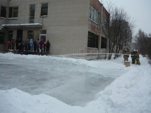 Пока пожарные заливали каток, ребята наблюдали за работой пожарной техники. А после того как каток был залит старший инженер группы профилактики пожаров Михаил Фетисов провел с ребятами урок пожарной безопасности. Напомнил мальчишкам и девчонкам как вести себя в случае возникновения пожара и как не допустить его возникновения.