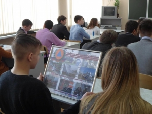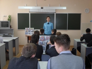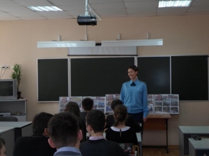 Инспектор ГПН остановился на основных целях и задачах ГО. Чтобы наглядно довести информацию, детям были представлены красочные стенды по истории служб МЧС. Школьникам рассказали, какую работу выполняют спасатели и пожарные, какое место занимает пожарная охрана в системе МЧС.