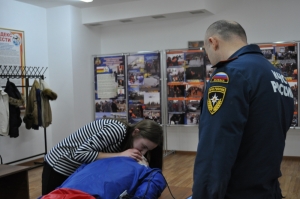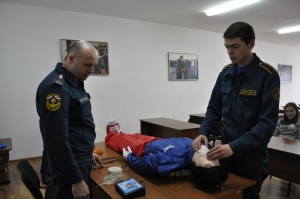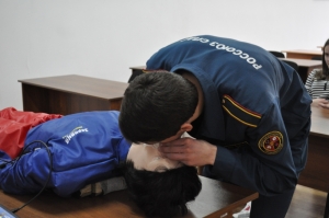 На практических занятиях акцент делался на четкой отработке действий при оказании первой помощи. Ведь очень важно не просто, к примеру, наложить жгут, а сделать это правильно. Для отработки навыков проведения сердечно-легочной реанимации воспользовались специальным манекеном. Александр, именно так зовут робота, оборудован выносным электрическим контроллером для отработки приемов сердечно-легочной реанимации, снабжен системами датчиков и устройств, предназначенных для имитации процессов жизнедеятельности человека, диагностируемых в полевых условиях, а так же для контроля за правильностью проведения реанимационных мероприятий.